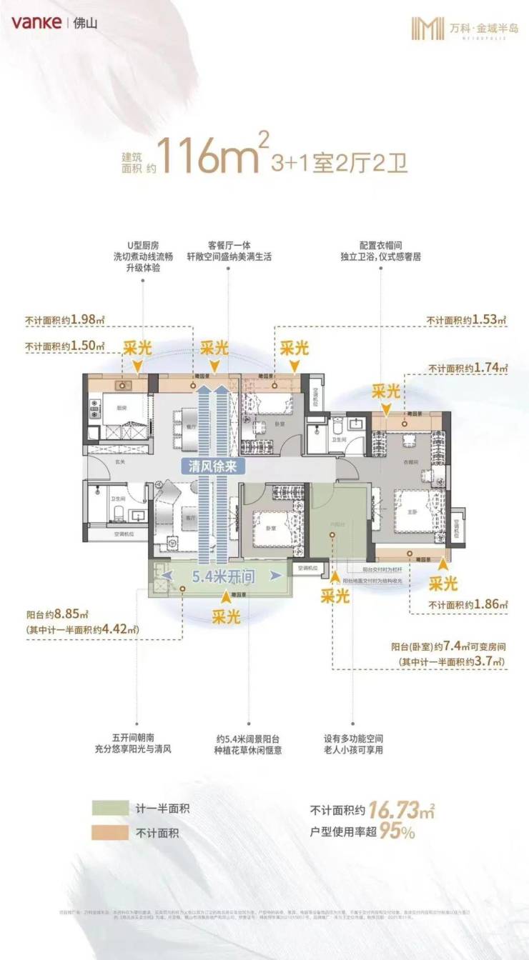 园林方面,万科在园林设计方面展现了大师级的手笔。项目将小区内超过4万平方米打造成中央园林,外部还建有大约1.8万平方米的环状滨河公园,实现了双重园林享受,这在广佛地区非常罕见。最大楼间距约为160米,让居民置身于风景之中,同时也带来了良好的通风和采光。