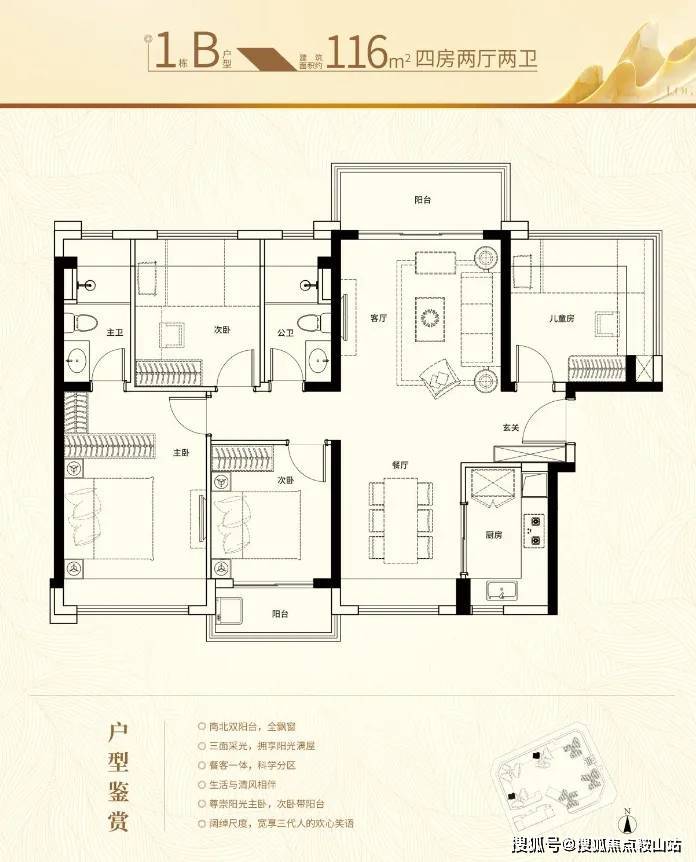 116㎡的4房2卫,设计的是南北通透竖厅格局