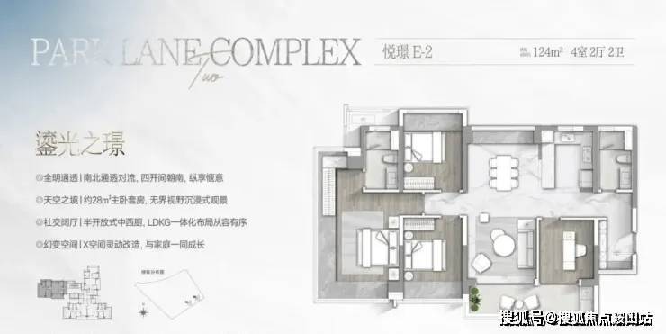 约124平四房这个户型的空间感更强,主卧带U型飘窗,两个次卧以及客厅都有设置飘窗位,延展的空间多,假如将玄关旁的灵动空间并入客厅,整个起居室有约28平左右,室内的观感可以达到140平以上。