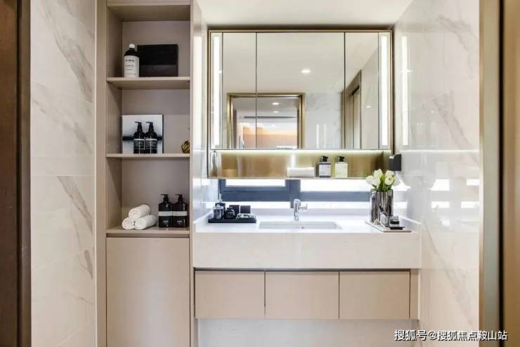 在卫浴柜的设计上,采用烤漆材质,铺就温馨而又奢华的居家氛围。通过展示性开放格增加随手用空间,加上封闭式存储区,简约而不简单,兼具美观与实用性。