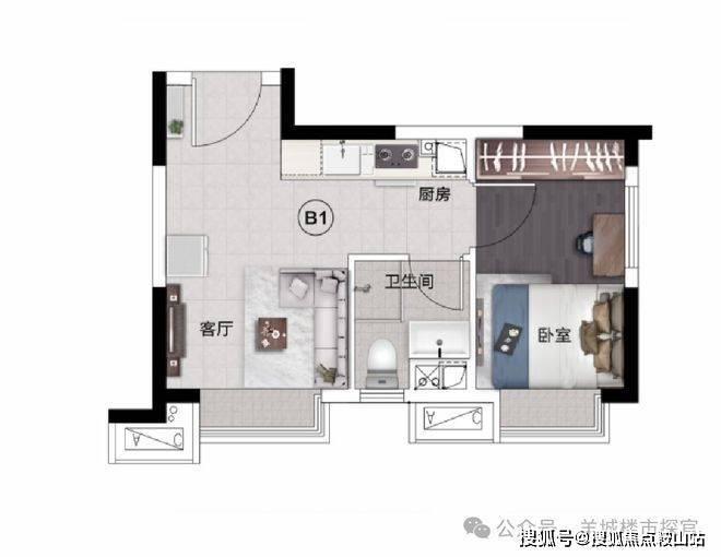 轻奢平层公寓 | 44㎡一室一厅一卫