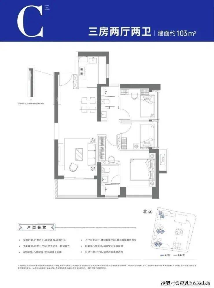 合正观澜汇三期主推建面约103-129平的3-4房,相比市面的常规刚需产品,尺度感更开阔、功能空间也更舒适。