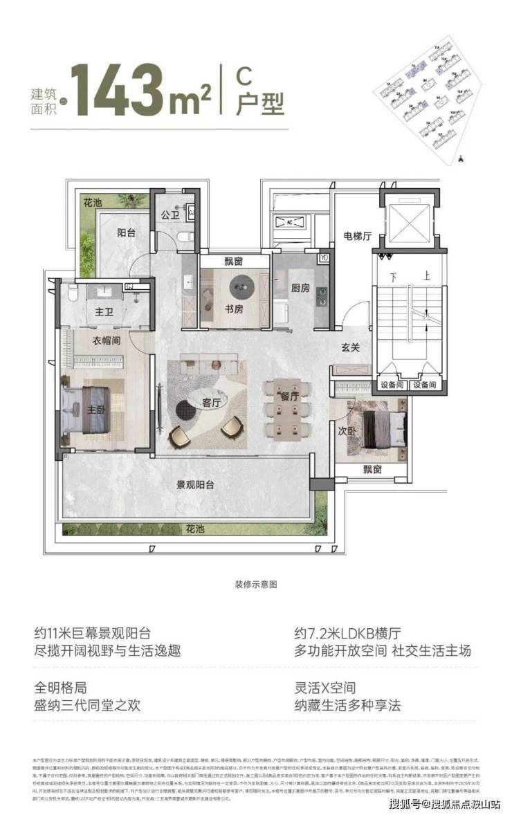 约143㎡户型带约11米巨幕阳台+约7.2米横厅;