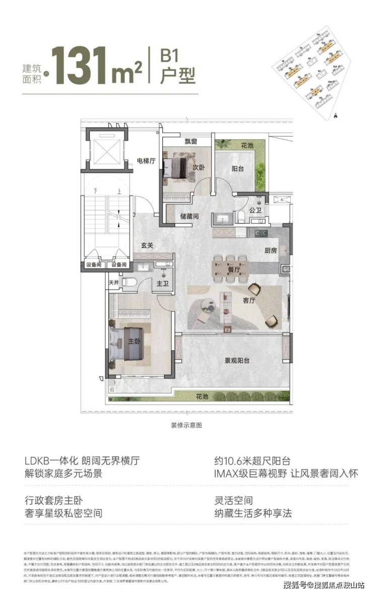【面积区间】建筑面积约110㎡、131㎡、143㎡、195㎡
