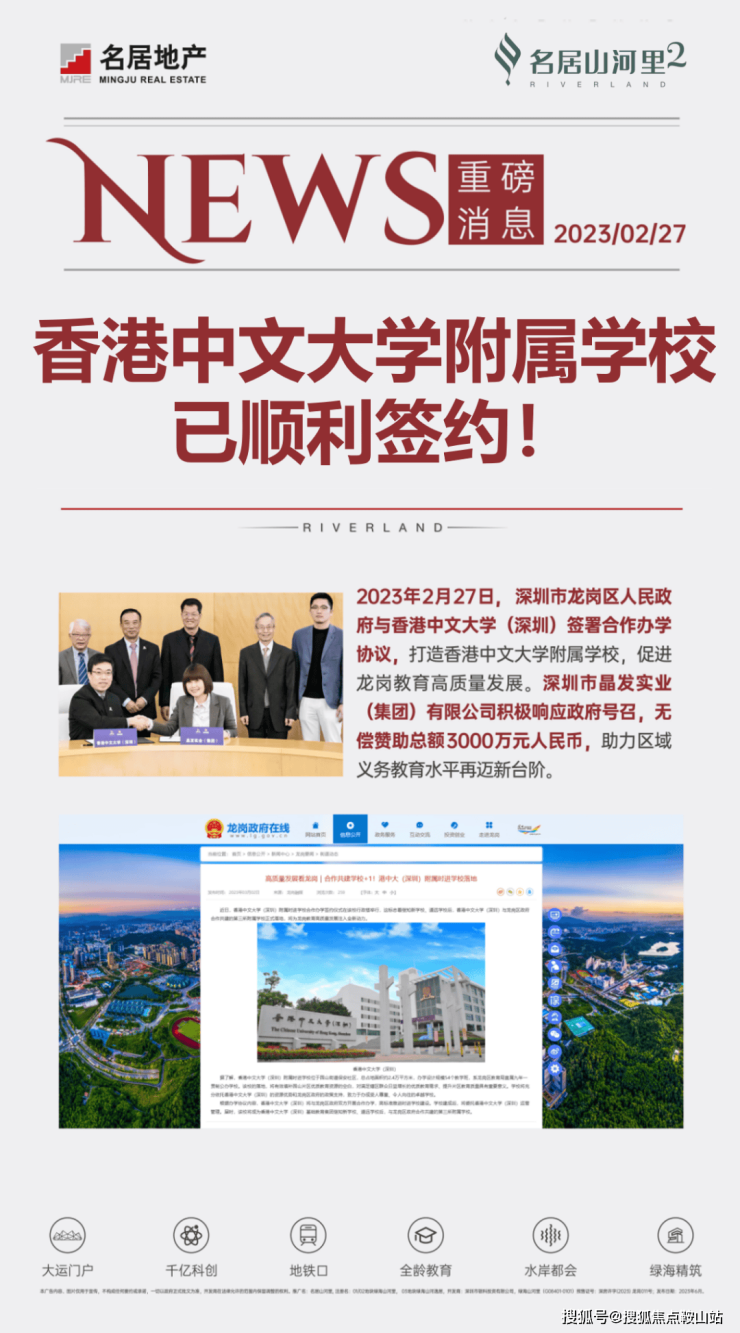 >>家门口即享54班九年一贯制公立学校——香港中文大学(深圳)附属时进学校(已签约、预计2024年9月动工),让孩子在书香熏陶中成长。