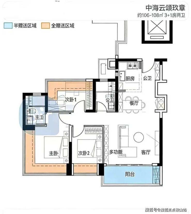 106㎡的3房2厅2卫,设计的是竖厅格局,方正大客厅,LDKB一体化,S墙设计预留冰箱卡槽位,动静分区,三开间朝南,可以改4房格局,主卧270°无柱转角飘窗,U型厨房,卫生间干湿分离,得房率约:100%(包含赠送),西南或东南朝向。