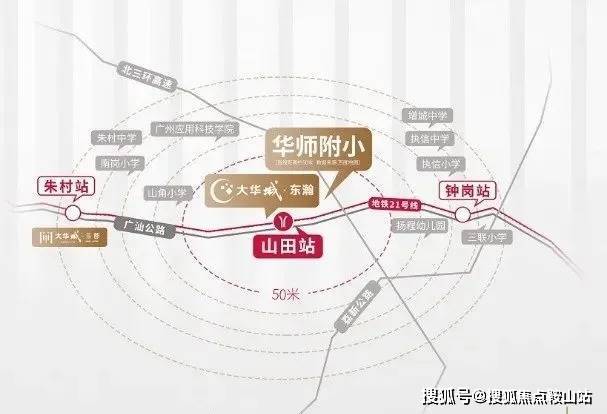 大华城——涵盖大华朱村中心城市地标(规划中)、地铁、教育、产业、商业、生态各项配套,名副其实的一生大城,未来容纳广州东约 30 万人口繁华居住地。