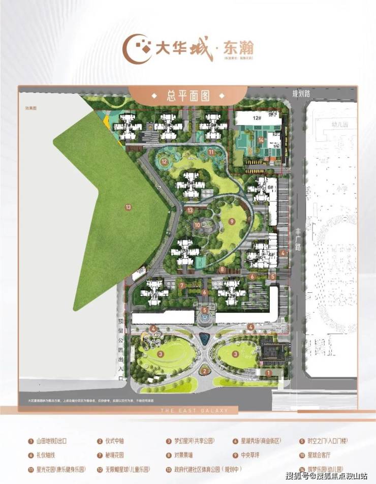 园林配置:国内一线设计大师作品,以“公园”为概念结合“星际迷航”故事线,融入鲲鹏IP符号,营造五幕“森”活剧场,满足全生命周期休闲娱乐活动。