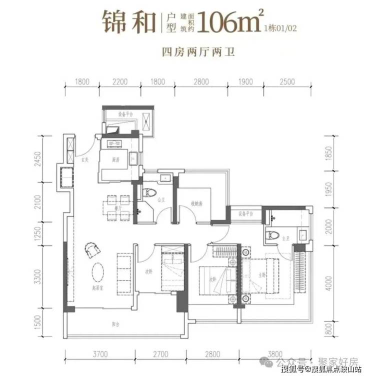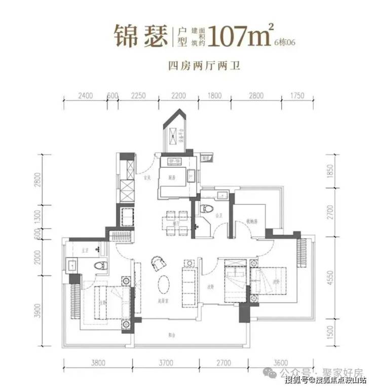104-107㎡4房2卫,折后区间单价约4.62-5万,折后区间总价约490-530万