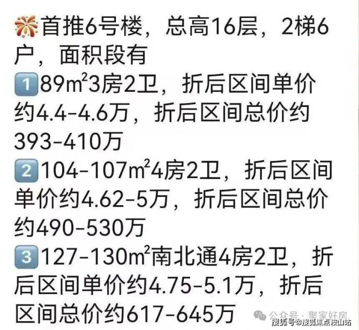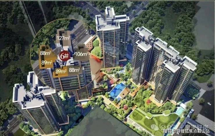 首推6栋产品有88-89㎡ 3房2厅2卫,106-127㎡ 4房2厅2卫户型,总高16层,2梯6户设计,全朝南向