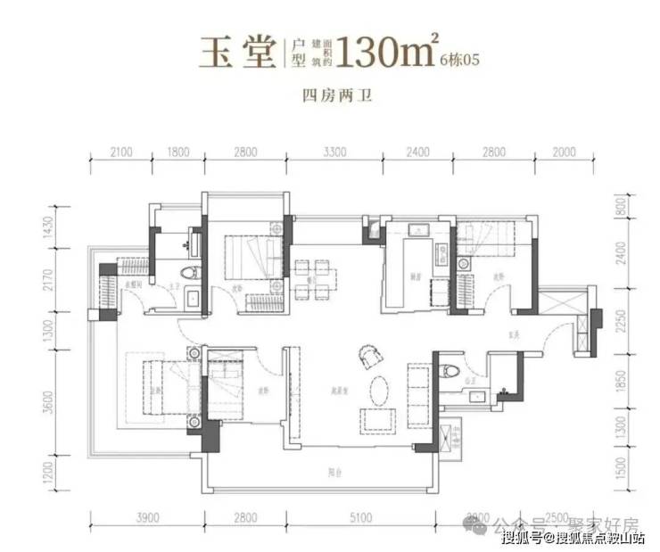 127-130㎡南北通4房2卫,折后区间单价约4.75-5.1万,折后区间总价约617-645万