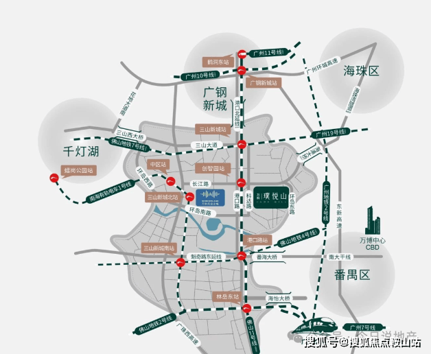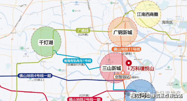 九横八纵五大桥四地铁一轨道,多维路网纵横湾区主场;海怡大桥、番海大桥等五大直通桥;佛山2号线(已开通)、佛山11号线(规划中)、佛山4号线(建设中)、佛山7号线(规划中)等4大地铁线;南海有轨电车1号线首通段(已开通);实现1桥到南站,2站到广钢,3站到鹤洞东,4站到海珠。