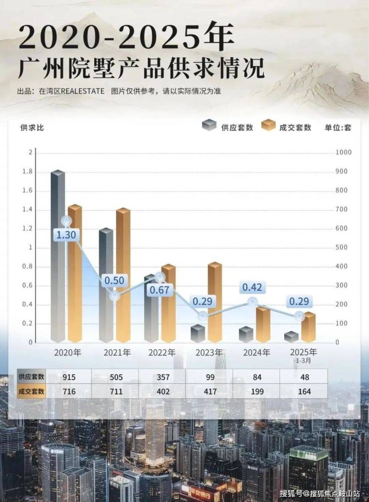 据不完全统计,广州院墅供求比直线下降,连续5年低于1.0;尤其在今年,截止3月中旬,全广州仅上新48套院墅,但已成交164套,供求比低至0.29。相当于,全广州每上新1套别墅,就有4名购房者,争相抢购。