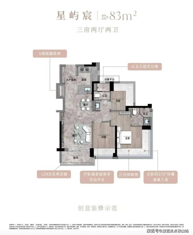 建面约83-133㎡3-4房宸式美学新著,LDKB巨幕方厅,跑道式景观阳台,小家化星级酒店主卧套房,270°环幕全景舱,客厅次卧无剪力墙灵动设计,实现超高实用率,每一户皆是颐安“超新一代作品”的匠心宣言。