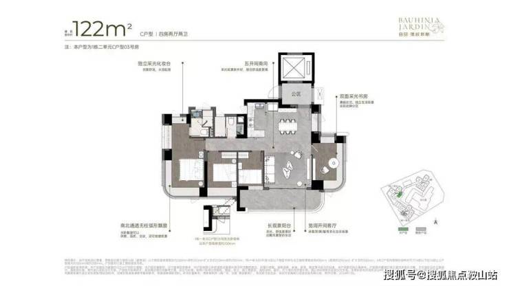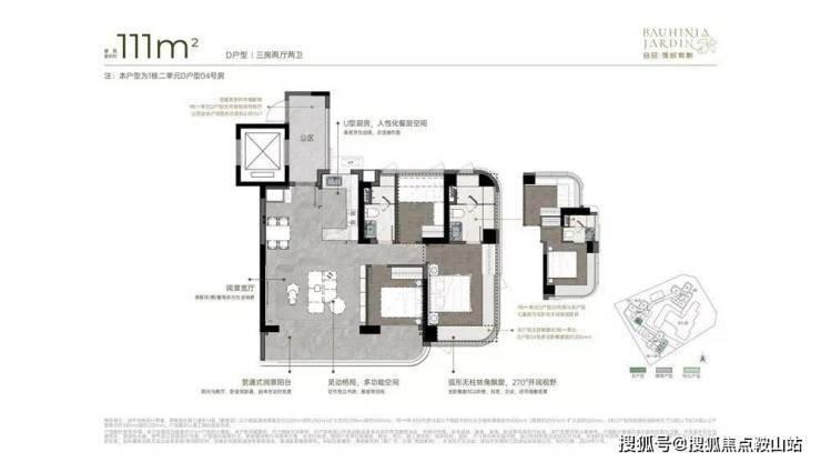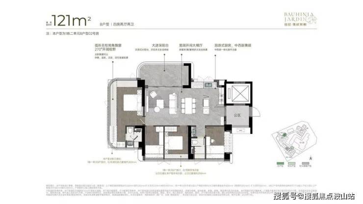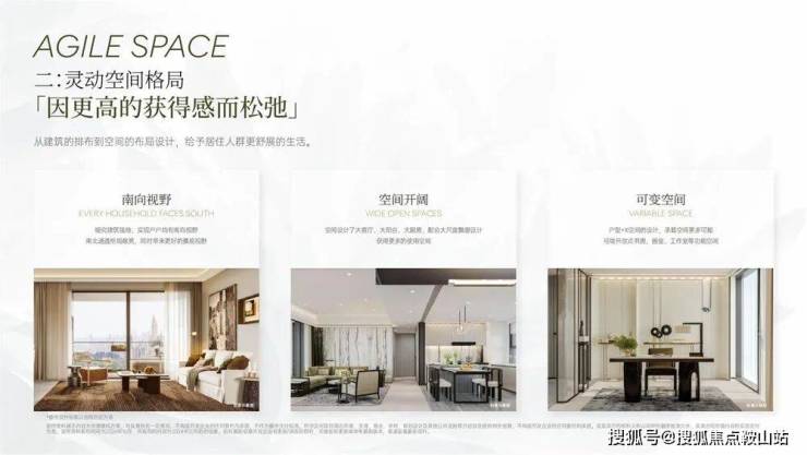洄游式厨房中西厨一体化操作台面;大开间客厅承载多元化生活场景;全屋飘窗利用多样,主卧无柱飘窗270°开阔视野功能多样。