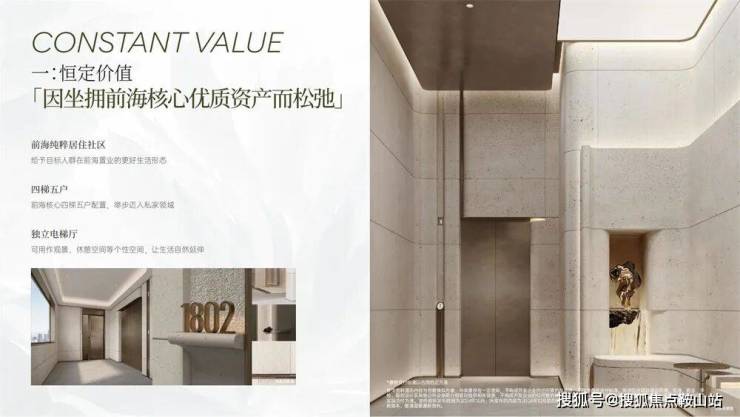 ①【优质资产】:国际前海纯粹住宅+独立电梯厅