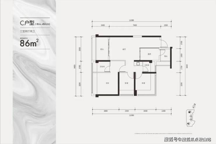 86平 三房一卫