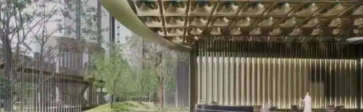 昭示性标识前场与艺术门廊式住宅社区大堂是业主身份转变的空间,改变传统“步入家门才为家”的概念。