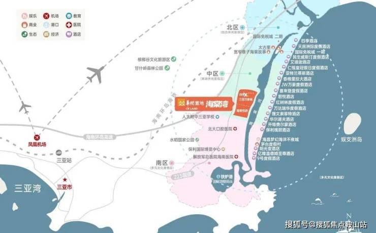 三亚海棠湾被定位为“国家海岸”,作为世界级的旅游度假区和度假天堂,承载国家热带滨海旅游品牌形象。规划"一点·一带·三区",约22公里黄金海岸线坐拥千亿级的娱乐、休闲、康养、购物、教育等资源配套。