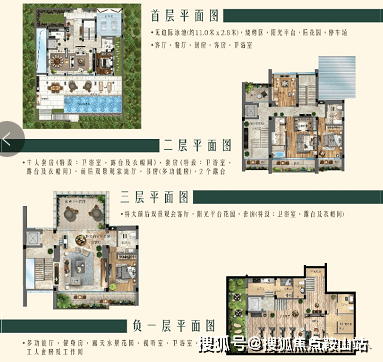 4室6厅6卫;地上三层,地下一层;单层净挑高4m;