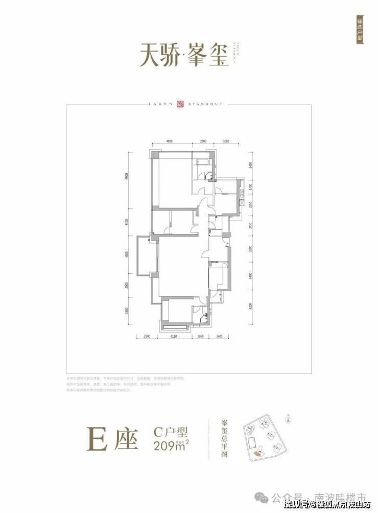 E座:约209-211㎡4房3卫 南北通