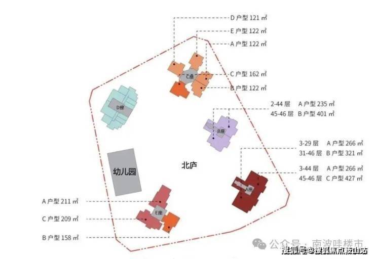 北庐住宅户型:建面约210㎡、235㎡、266㎡、322㎡,410-470㎡(顶复)