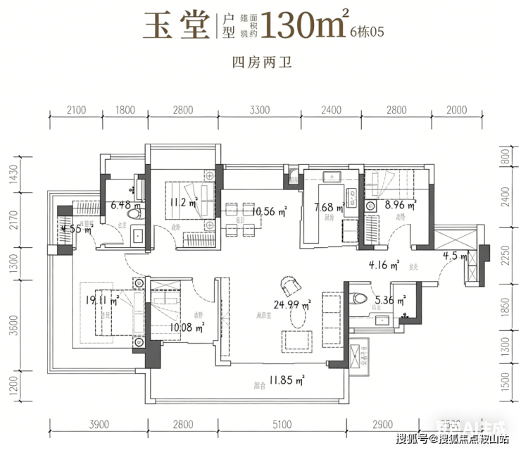 项目主打建面约 89-130㎡精装 3-4 房,全系遵循大面宽、南向采光、动静分区设计,搭配 270° 无柱转角飘窗与超大景观阳台,得房率高达 97.47%-104.06%,空间实用性拉满。