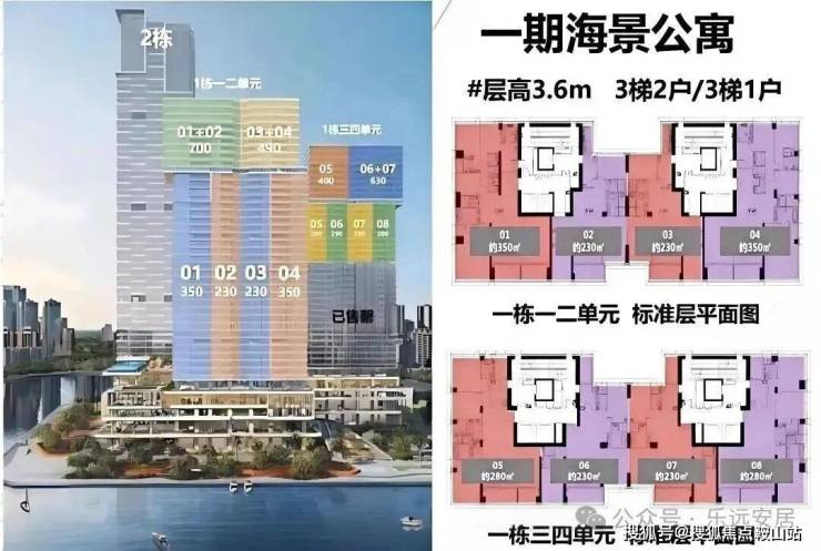 500-700㎡超大户型:700㎡户型位于1栋一、二单元高区33-38层,由01+02户型组成。户型宽敞奢华,可尽享海景与城市景观,为高端客户提供极致居住体验。