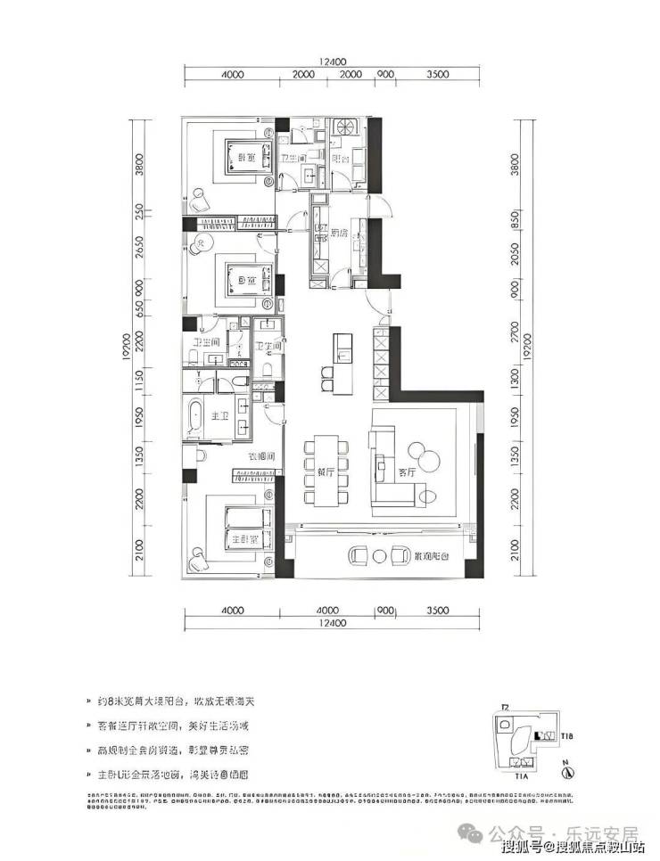 采用双龙抱珠户型设计,户型方正实用。双套房朝南,可赏南向一线海景,配备广角视野景观阳台。
