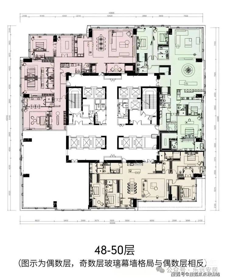 468㎡五房三厅六卫:位于1栋一、二单元高区33-38层,一层一户,仅6席。五房四套房设计,主卧L形全景落地窗,270°最佳观海位,南向超大三厅一体,动静分区布局有序。