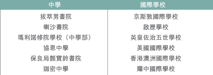 屋苑临近九龙塘,国际幼稚园、国际学校众多,例如耀中国际学校、澳洲国际学校、美国国际学校等知名国际学校都在此汇集。