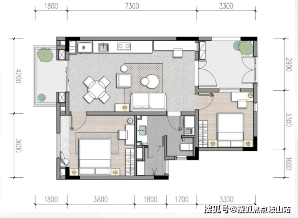 ·一体化客餐厨:约4.2米面宽,30.66㎡,布局灵活多变;