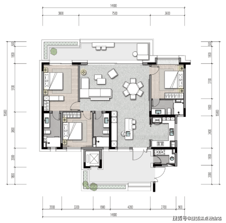 ·独立三卧:独立分布,私密性良好