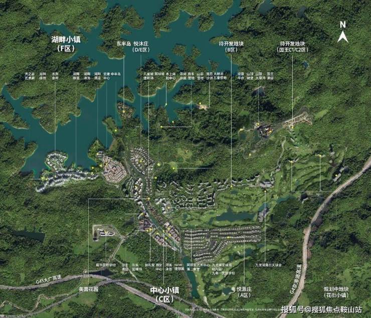 中旅阿那亚九龙湖是一个物业属性丰富的超大社区,包括:已开发悦源庄(A区)、悦沐庄(D区/E区)、美茵花园、东半岛等区域;正在热销的中心小镇(C区)、半山湖岸(F区),待开发的B区、国王区等,100万㎡的建筑体量将成就又一个旅游地标。