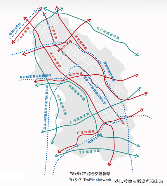 永九快速路、九佛快速路、智慧大道、知识大道、广汕快速路、广从快速路、知识城至生物岛快速路