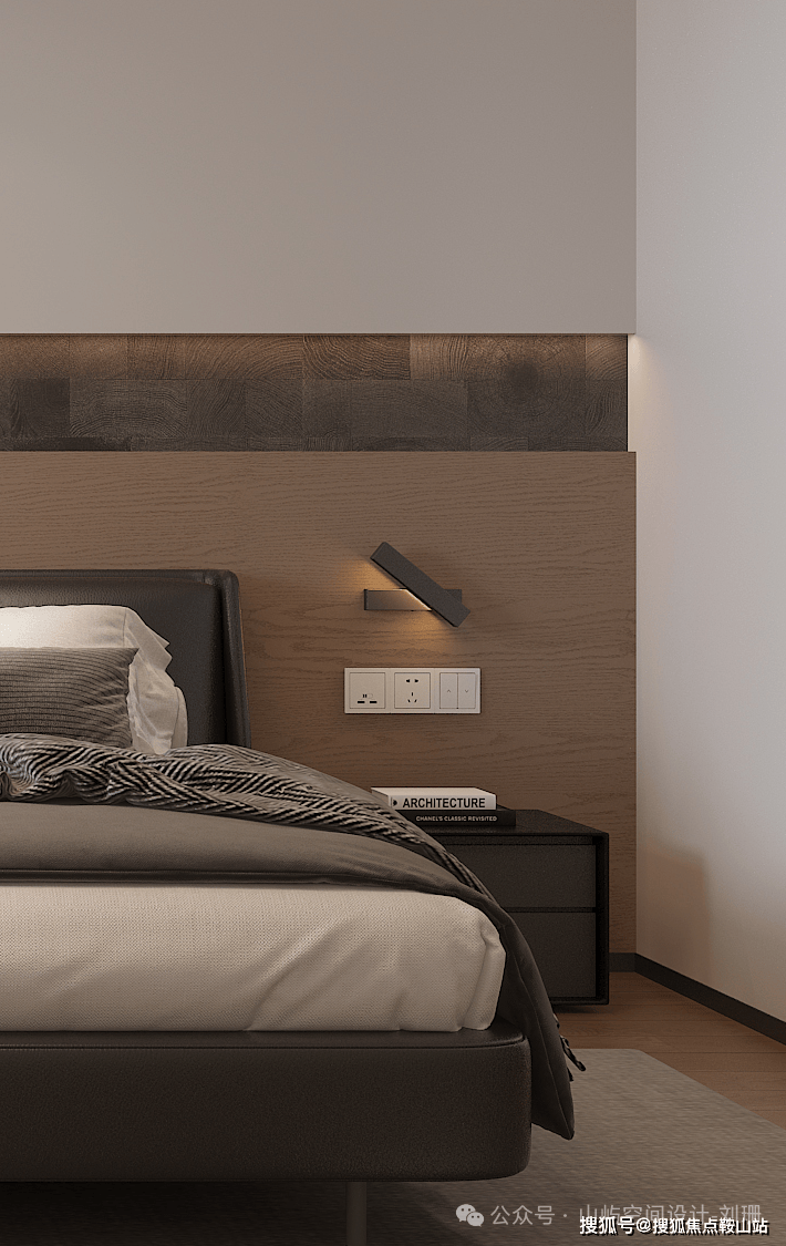 床头背景采用分层设计手法