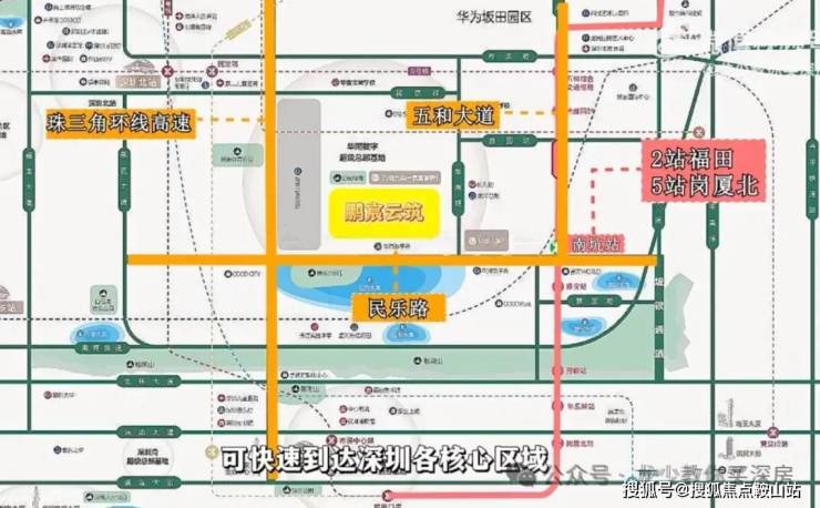 港深科技中轴之上,向南连接河套深港科技创新合作区、福田CBD,向北连接坂雪岗科技城,享有龙华福田双中心配套服务。