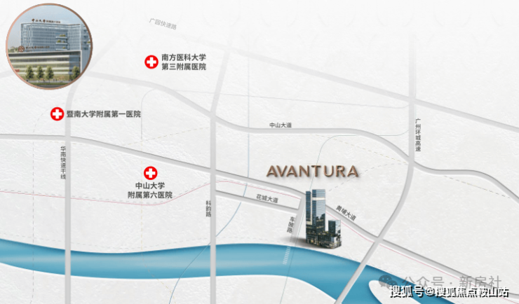 项目周边拥有南方医科大学第三附属医院,中山大学附属第六医院,暨南大学附属第一医院,黄埔区中医院……等多家医院为业主健康保驾护航。