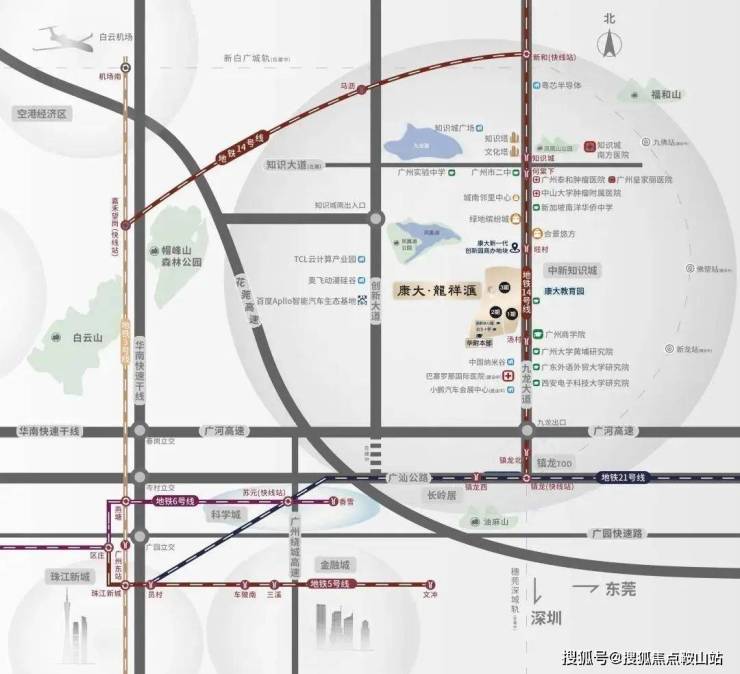 自驾方面,通过广河高速九龙出口接驳华南快线,非高峰期30分钟可抵达珠江新城,9分钟直达白云机场,45分钟覆盖大湾区主要城市。