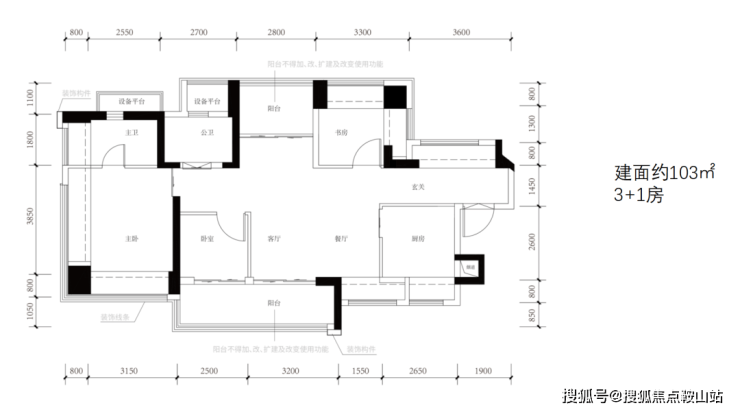 创新型成长户型,适应家庭不同阶段的需求变化,拔墙设柱设计、分户S墙、创新LDKC内外亲子双区等