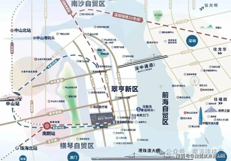 中山雅居乐湾际壹号楼盘的半径90公里内,坐落着四座国际机场、四条超级通道、四大湾区高速、四座大型地铁、一座国际客运码头和一条出行快线。全能式的五维交通路网,覆盖海陆空三大线路,轻松为你实现一小时大湾区任意行!