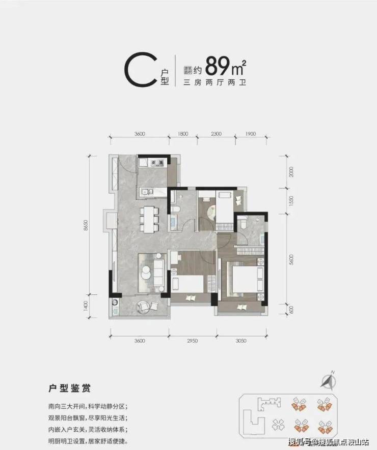 89㎡3房2卫365-436万 单价:4.1-4.8万