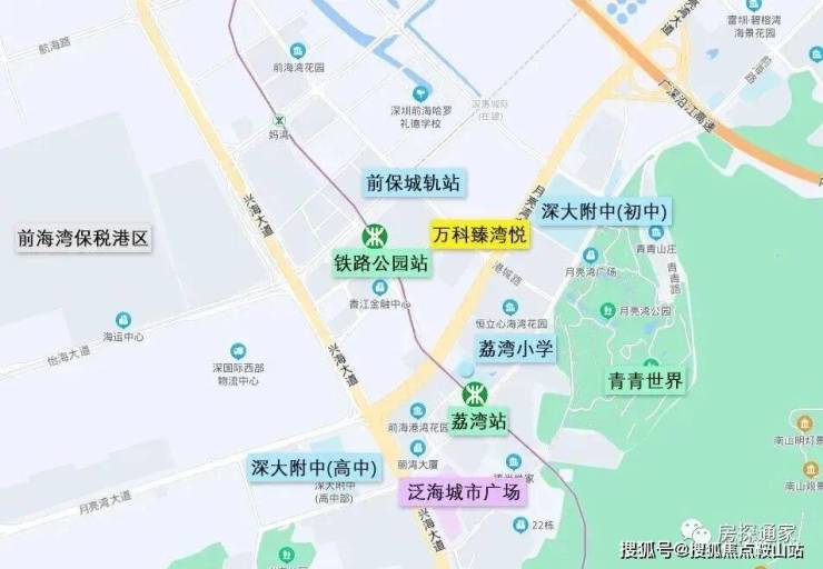 陆路交通:项目1.5公里范围内分布有三大道一高速;月亮湾大道直连南坪快速,到西丽、留仙洞、北站商务区、坂田等区域很方便;月亮湾大道更是直连滨海大道、深南大道、北环大道,这几条路大家应该都不陌生,连接的都是深圳非常核心的区域;广深沿江高速主要起到前海与宝中、机场、空港新城、海上田园等西部片区快速通勤的作用。