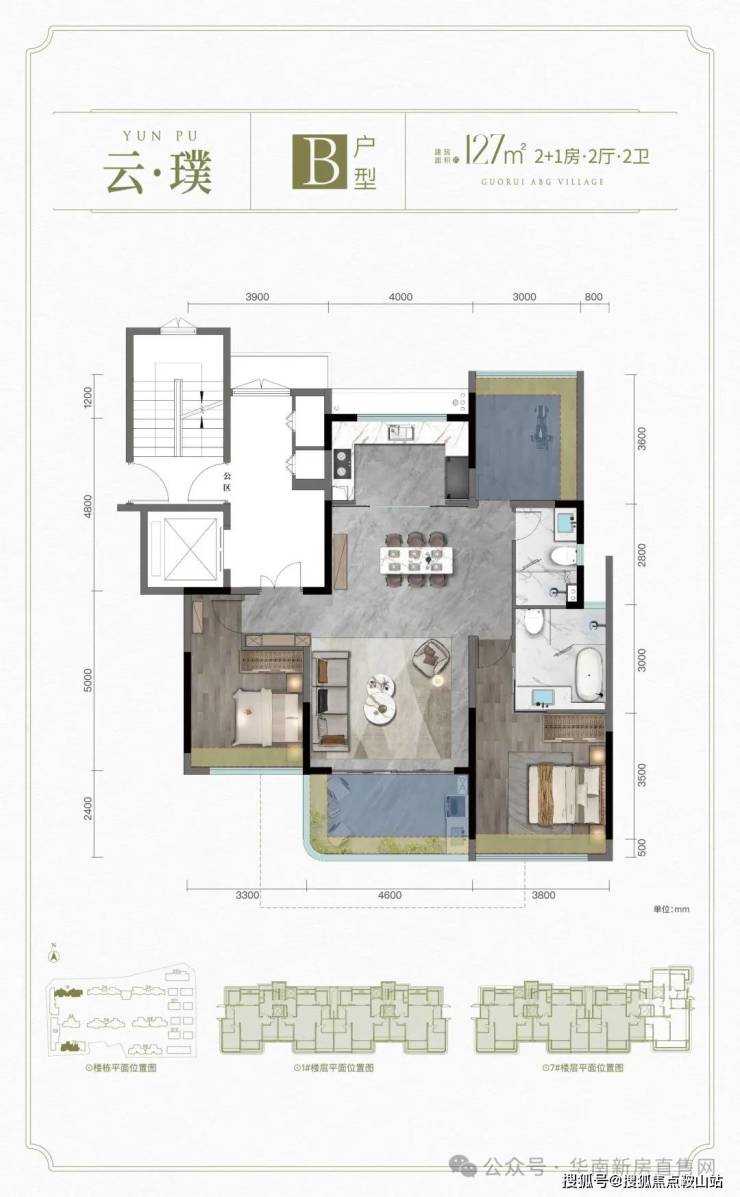 B户型: 建面约127㎡ 2+1房2厅2卫