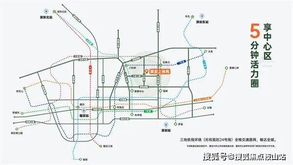 ③【享中心区5分钟活力圈】3地铁线环绕(地铁6、7、9号线,另有规划24号线),畅达全城。5分钟内联通城市主干道(北环大道、清平高速、坂银快速通道、深南大道、滨河大道),交通路网四通八达。20分钟内抵达城市枢纽(福田高铁站、深圳北站、深圳站、福田口岸、皇岗口岸),出行方便。(市政配套设施及规划中、建设中的公共设施配套内容,最终均以政府有关部门核准及审批文件为准)