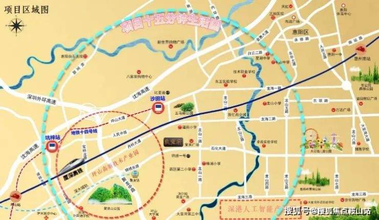 交通配套:项目周边城市路网四通八达,连接深圳的交通主动脉石化大道位于项目南侧,往西直接连接深圳坪山锦绣东路,紧贴深圳坪山。项目旁10米就是深圳,约25分钟可以到龙岗中心城,约50分钟到罗湖中心。