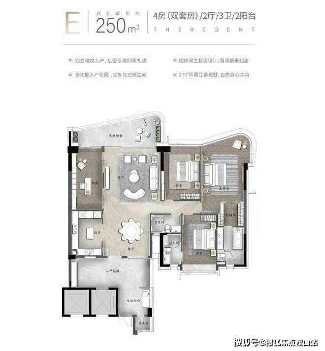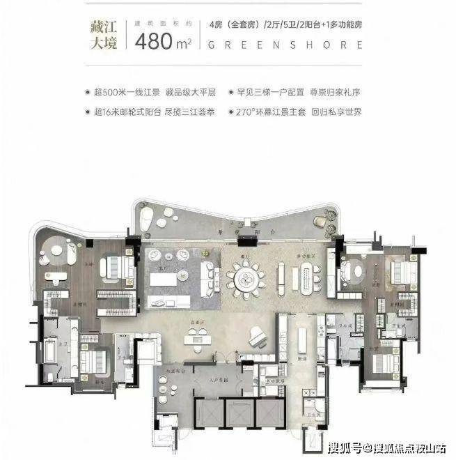 南天名苑提供了丰富的户型选择,涵盖140-480㎡的江景大平层以及279-437㎡的叠墅。叠墅的设计尤为独特,实用率高达355%,每户均配备私家电梯、入户花园及超大露台,部分户型首层花园面积甚至可达797㎡。这样的设计既保证了居住的舒适度,又提升了房屋的整体价值。