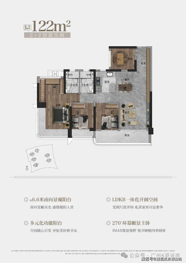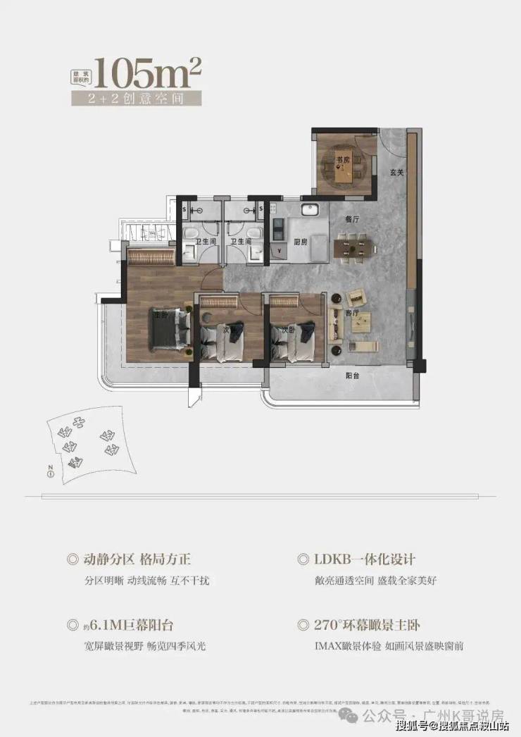 105㎡户型,约6.1M巨幕阳台 | 270°环幕瞰景主卧|LDKB一体化设计