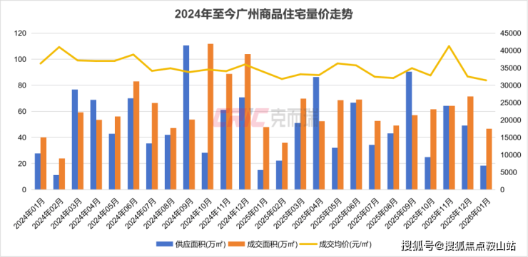 在“建好房+稳市场”双轮驱动下, 1月广州市场又出现了什么样的变化呢?监测数据现实,受春节临近影响,广州楼市迎来传统淡季,全市仅12盘有新增供应,供应面积18.35万㎡,环比减少63%,同比增加21%;网签量在上月冲刺年终业绩拔高后显著回落,全市成交46.82万㎡,环比下滑35%,同比基本持平。