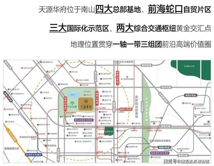 交通配套:距离地铁 12 号线 “中山公园站” 仅 80 米左右,未来还将与规划中的 21 号线交汇,形成双地铁优势。此外,项目周边还有南山大道、北环大道等主干道,自驾出行十分便捷,去往前海、深圳湾、宝安等地都相对较近